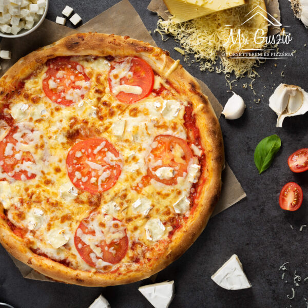 Paradicsomszósz, paradicsomkarika, füstölt sajt, camembert sajt, feta sajt, mozzarella sajt
