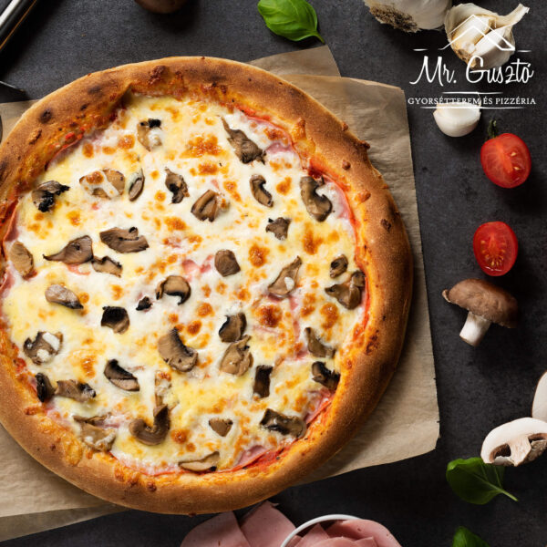 Paradicsomszósz, sonka, gomba, mozzarella sajt