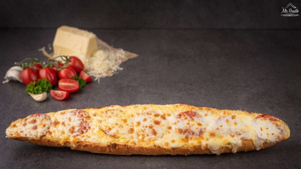 Nagy bagett, vaj, szalámi,  sajt, választható szószok a tetejére